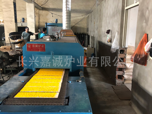 粉末燒結爐的特點: 1、整套設備由爐體,網帶傳動系統溫控系統及氣氛控制系統組成。 2、爐體由進料段,預燒段,燒結段,緩冷段,水冷段及出料段組成。 3、網帶傳動系統由耐高溫網帶及傳動裝置等組成。 4、網帶的運行速度通過變頻器調節,配置有數顯式網帶測速裝置,可直讀網帶速度。 5、溫控系統由熱電偶,數顯式智能PID調節器和可控硅組成,形成閉環控制系統,可實現自動精確控溫 6、保護氣氛的流量由氣體流量計顯示,可根據工藝需要調節各種氣氛的流量。 7、冷卻水溫由控溫元件控制電磁閥的開閉實現自動控制。